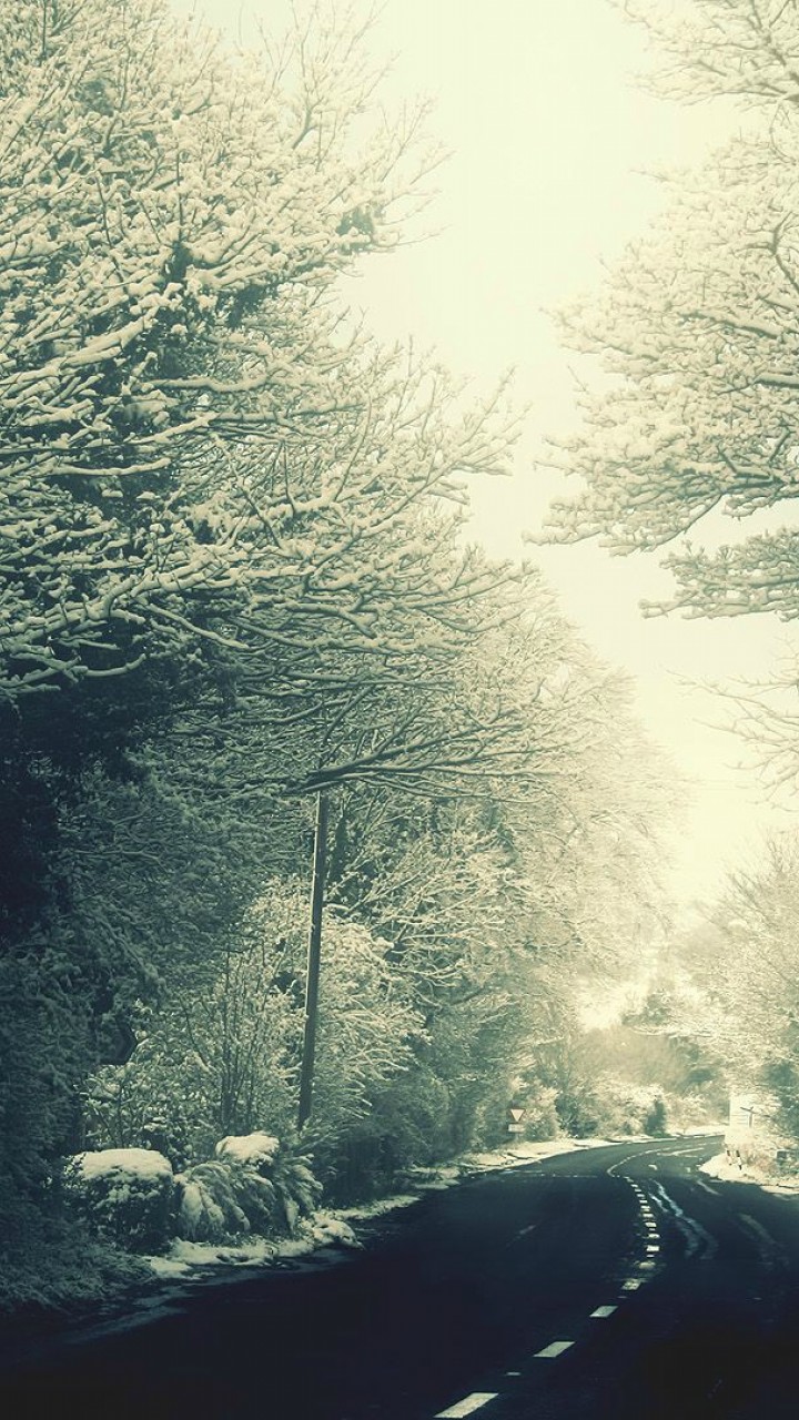 Snow Trees and Road - 720x1280