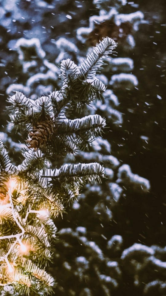 Snowfall over spruce branches HD Wallpaper - 540x960