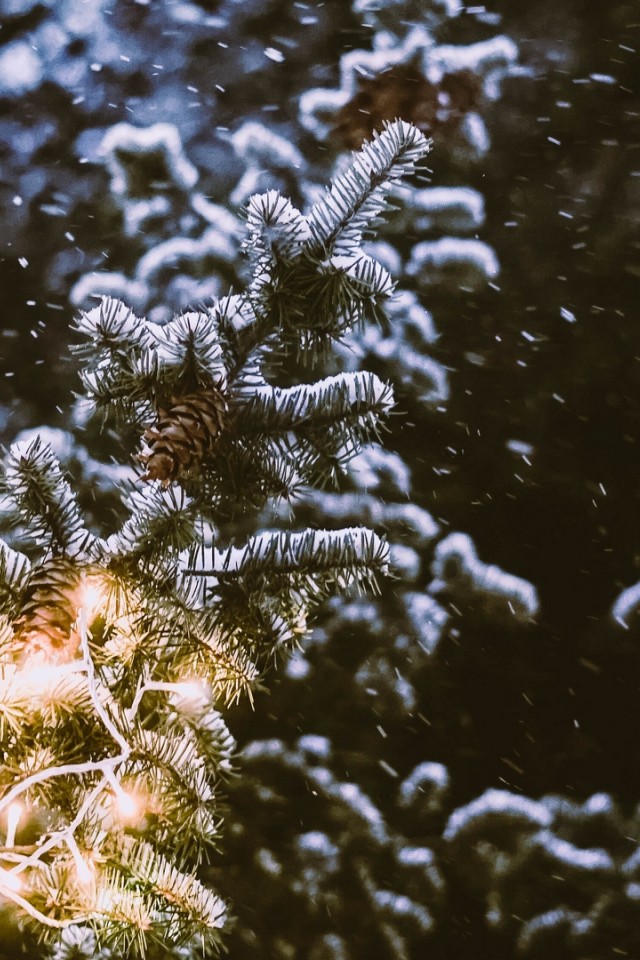 Snowfall over spruce branches HD Wallpaper - iPhone 4 / 4S / iPod