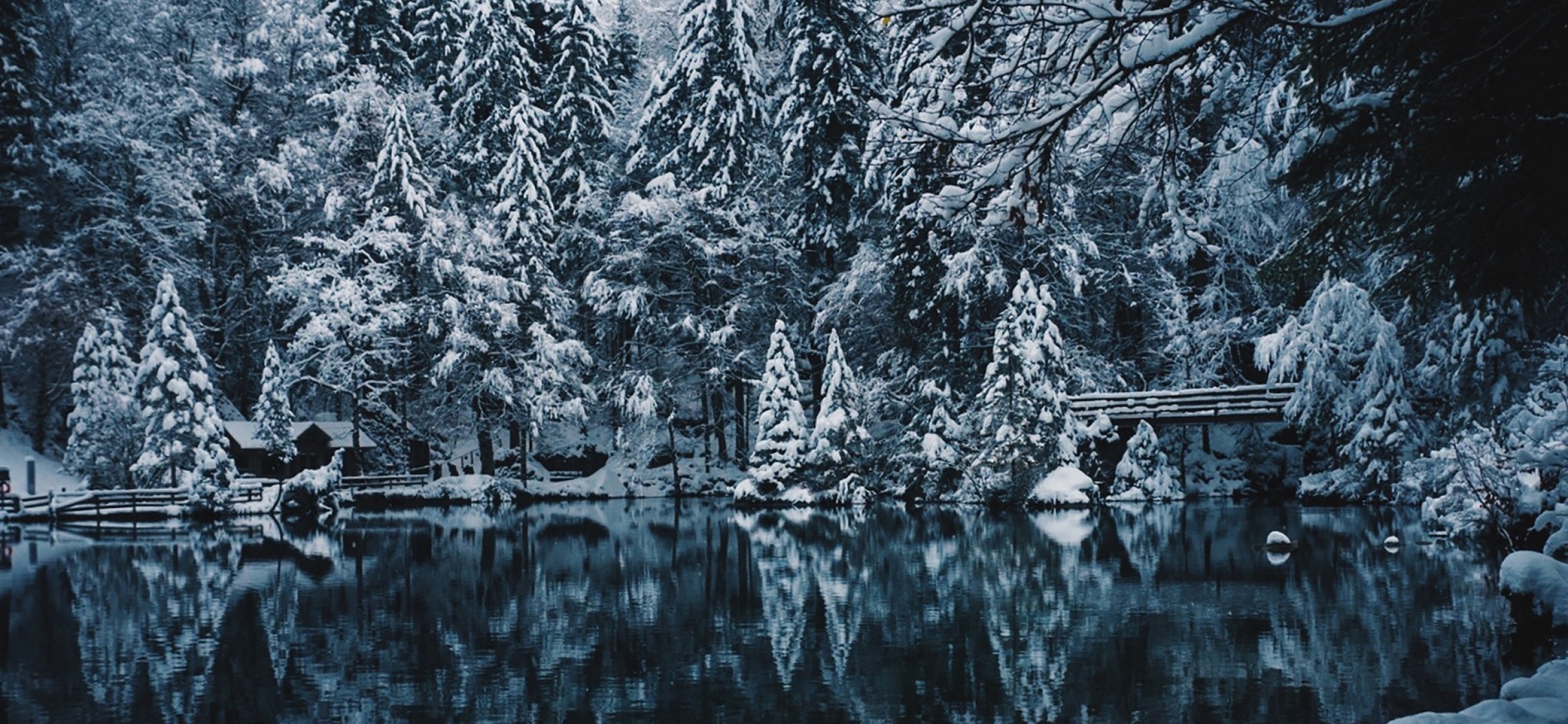 Snowing over the lake HD Wallpaper - iPhone X