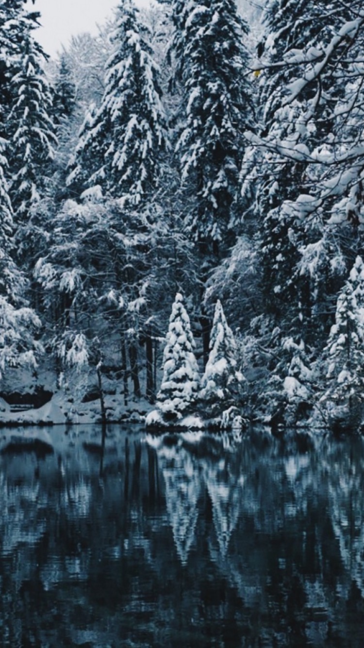 Snowing over the lake HD Wallpaper - iPhone 6 / 6S