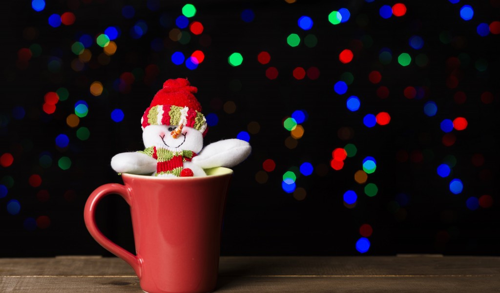 Snowman In Red Ceramic Mug HD Wallpaper - 1024x600
