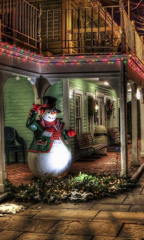 Snowman outside a house HD Wallpaper - 480x800