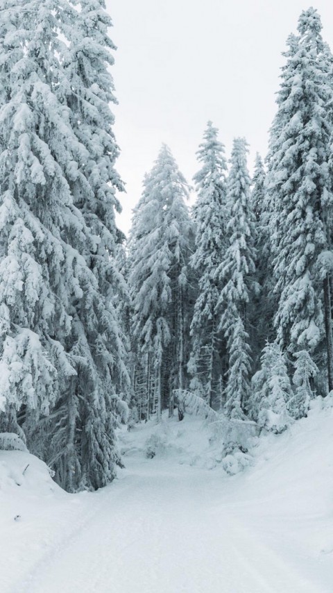 Snowy path among trees HD Wallpaper - 480x854