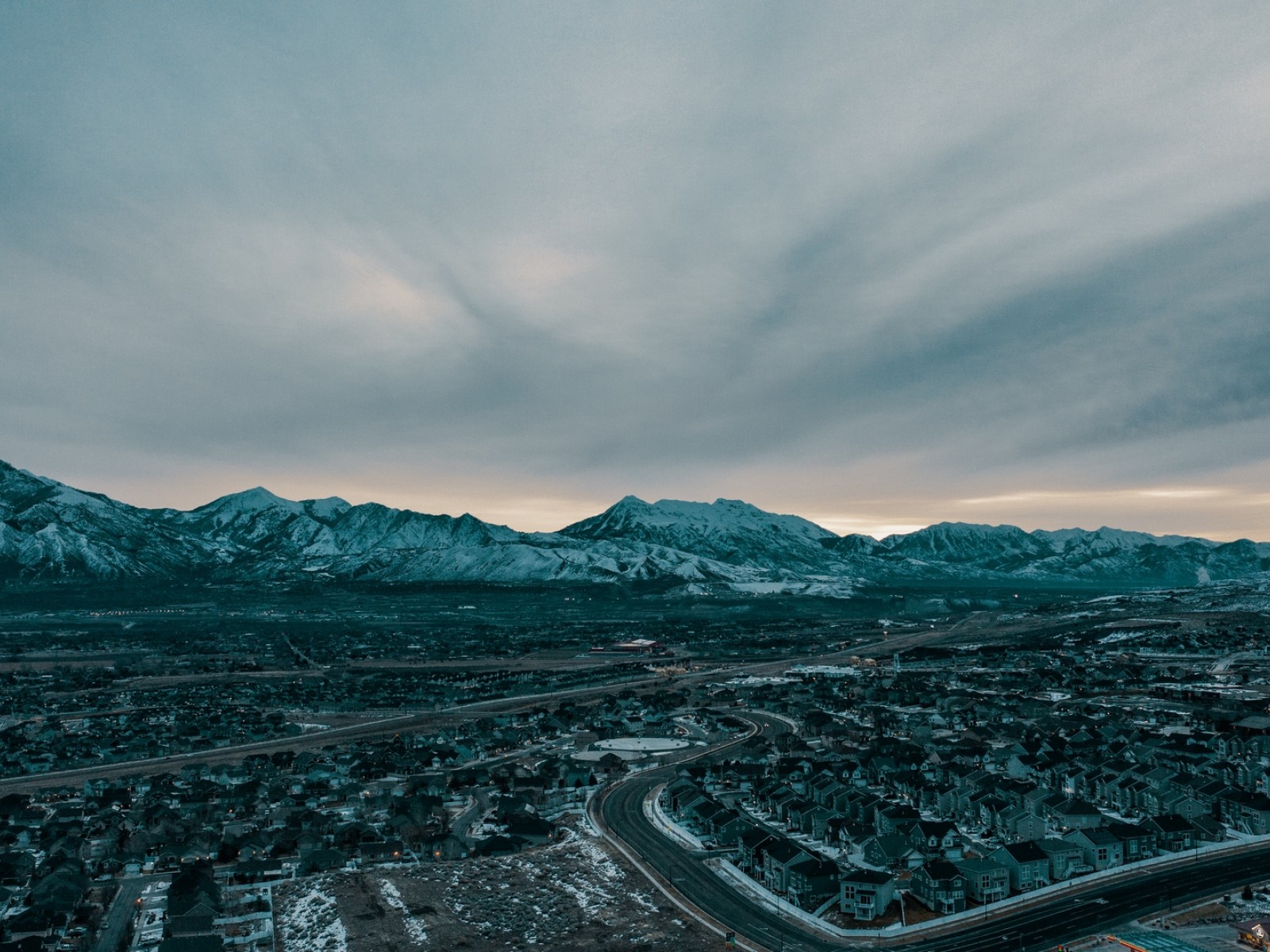 Snowy village mountains HD Wallpaper - 1600x1200