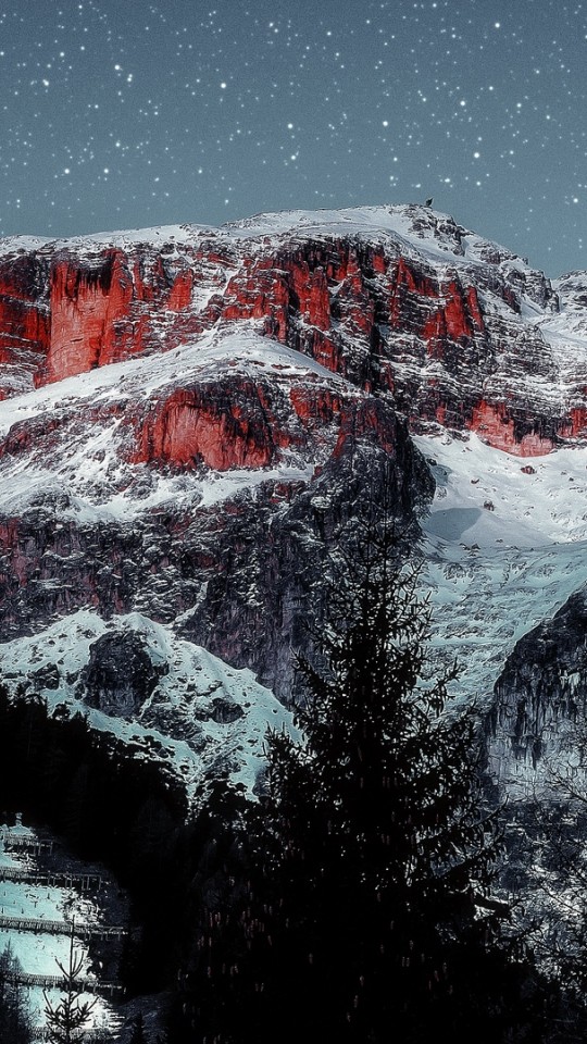 Starry sky over mountain peaks HD Wallpaper - 540x960