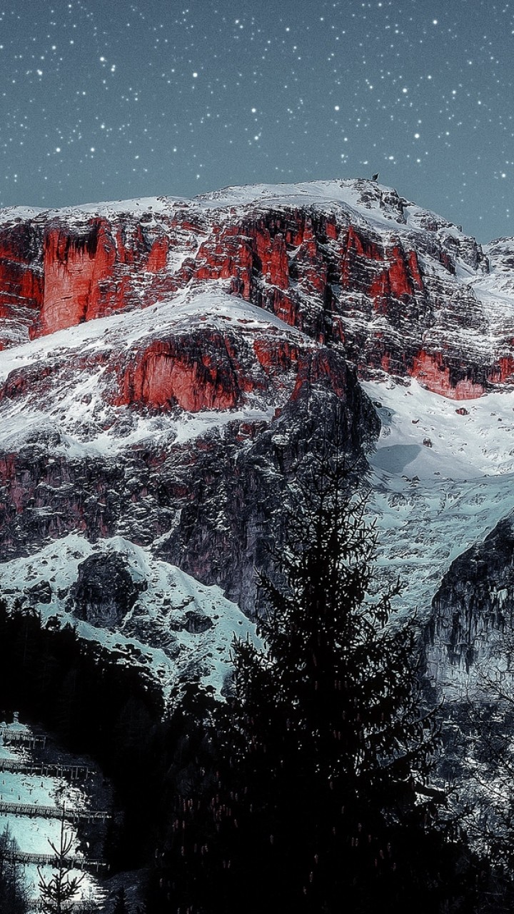 Starry sky over mountain peaks HD Wallpaper - 720x1280