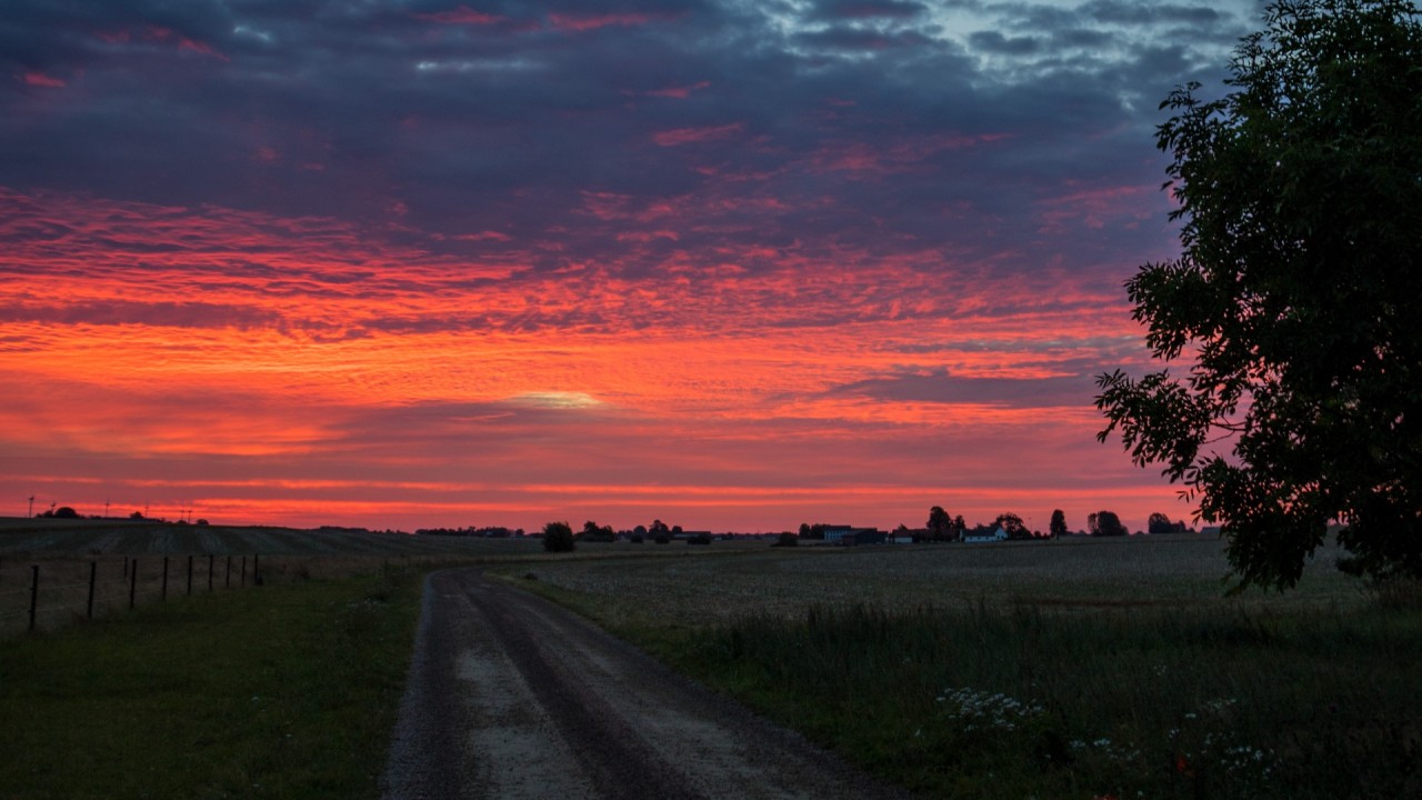 Sunrise at a grassy road HD Wallpaper - 1280x720 (720p)