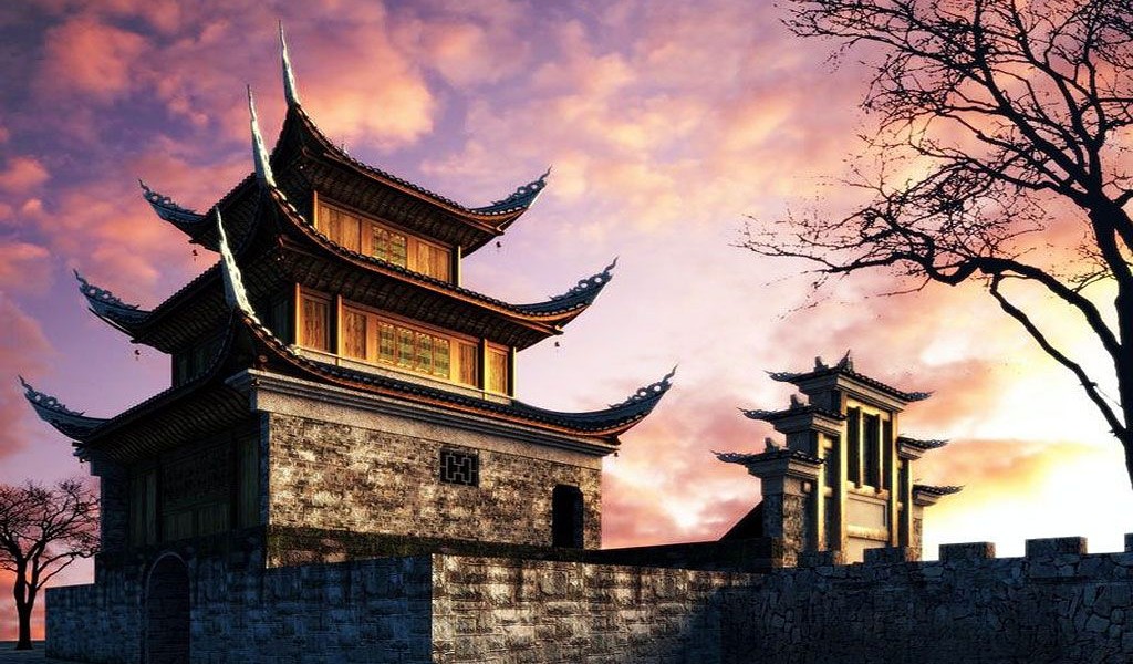 Sunrise in Japanese Pagoda Memorial HD Wallpaper - 1024x600
