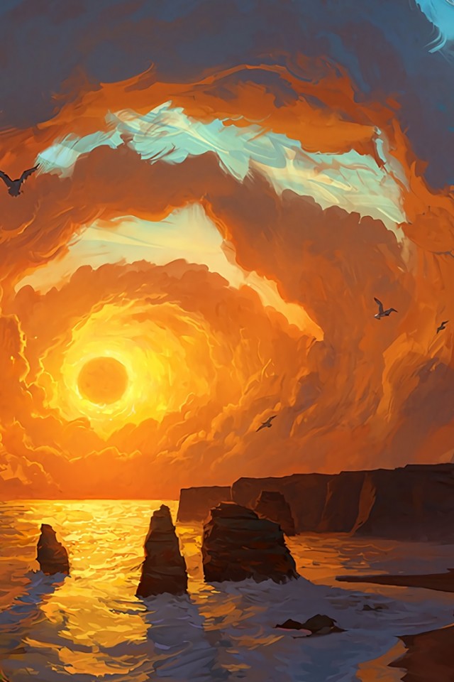 Sunset at the sea HD Wallpaper - iPhone 4 / 4S / iPod