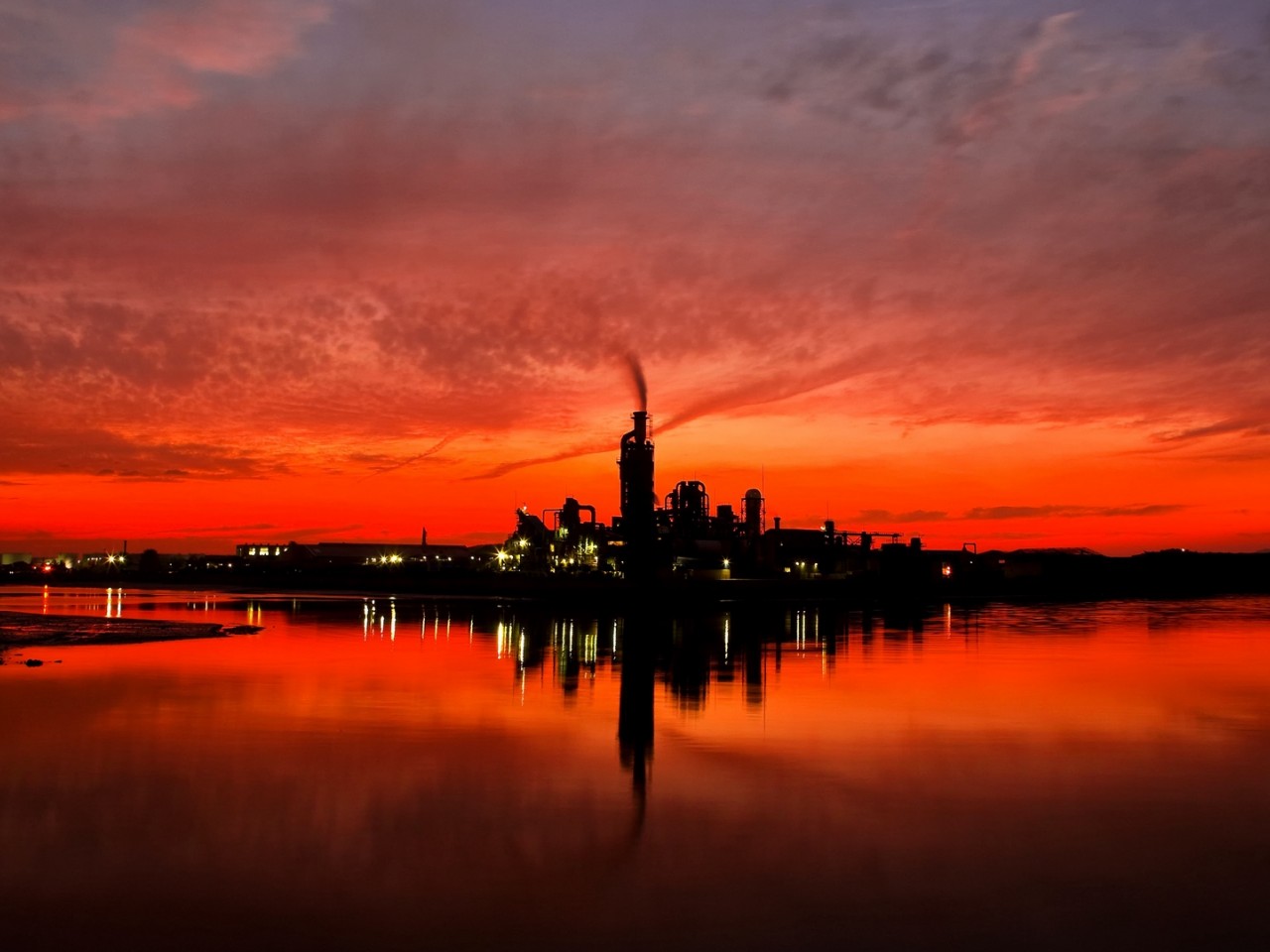 Sunset over a factory HD Wallpaper - 1280x960