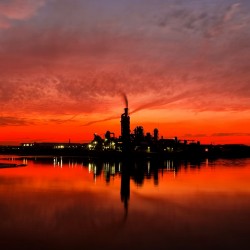 Sunset over a factory HD Wallpaper - Google Plus Profile Picture