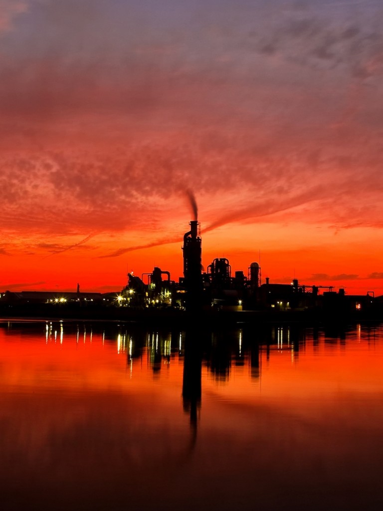 Sunset over a factory HD Wallpaper - Non-retina iPad