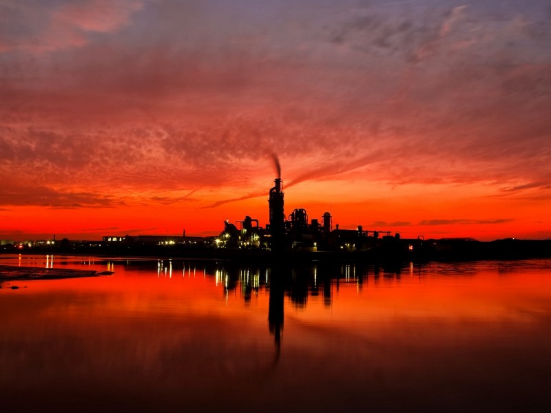 Sunset over a factory HD Wallpaper - 800x600