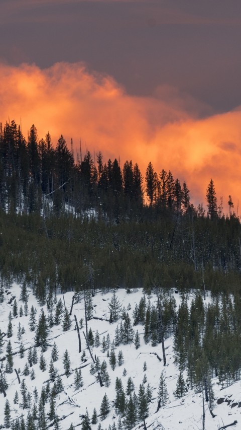Sunset over a snowy mountain HD Wallpaper - 480x854