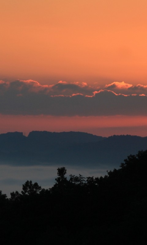 Sunset over the branches HD Wallpaper - 480x800