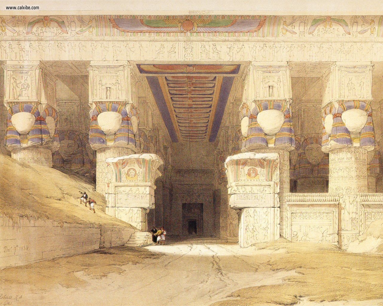 The Facade Of The Temple Of Hathor At Dendera HD Wallpaper - 1280x1024
