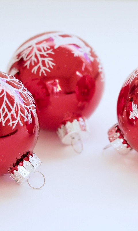 Three White-and-red Christmas Tree Printed Baubles HD Wallpaper - 480x800