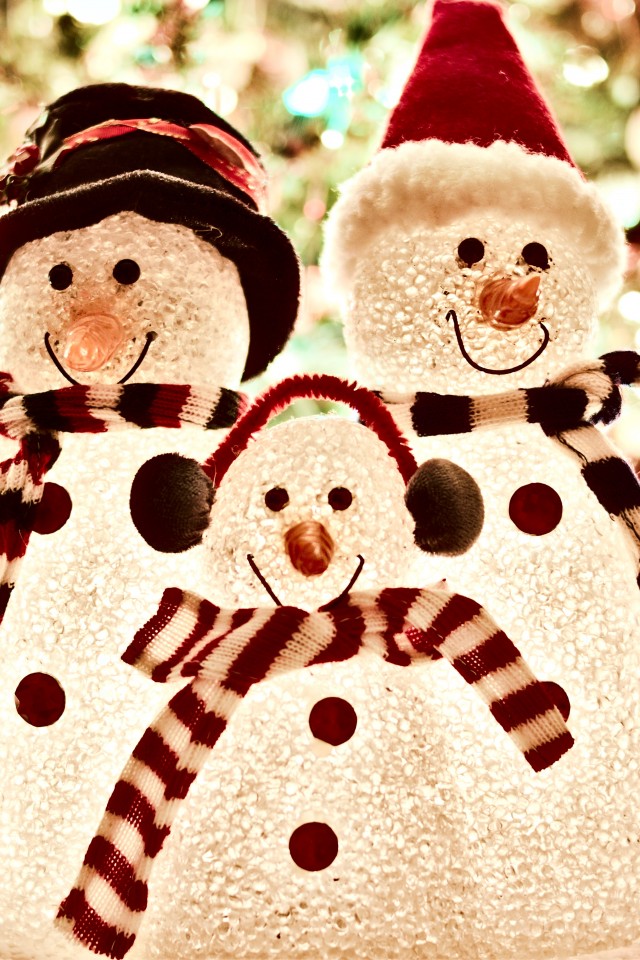 Three White Snowman Decorations HD Wallpaper - iPhone 4 / 4S / iPod
