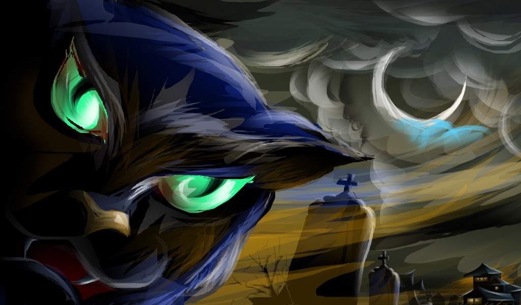 Tollyee Halloween Black Cat HD Wallpaper - 1024x600