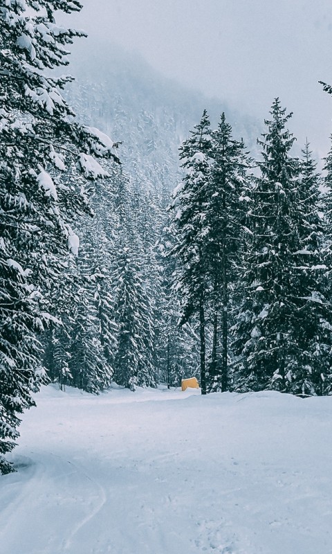 Traces over a snowy road HD Wallpaper - 480x800