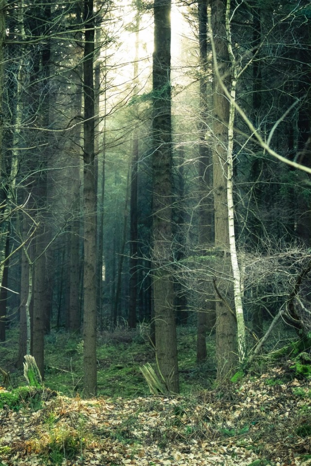 Tree trunks in the forest HD Wallpaper - iPhone 4 / 4S / iPod