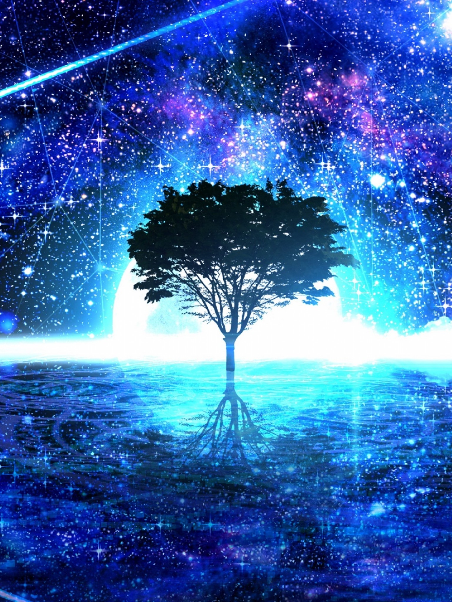 Tree under a starry sky HD Wallpaper - Retina iPad