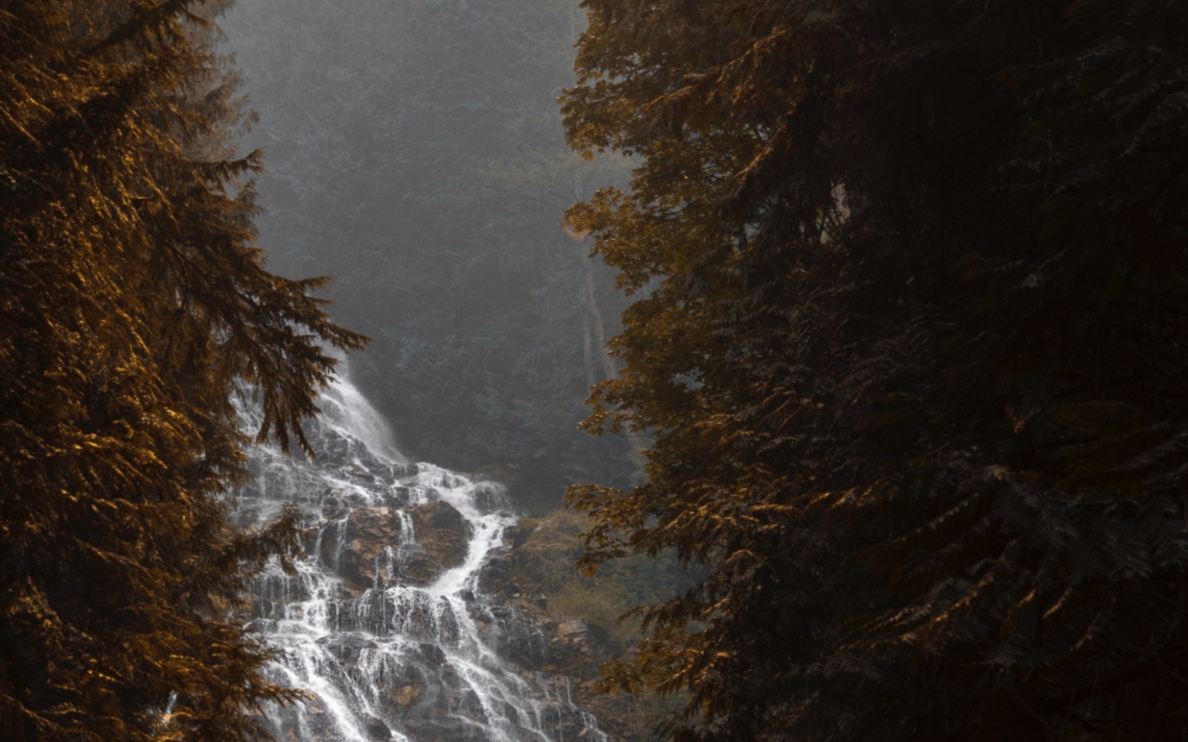 Trees flowing over the waterfall HD Wallpaper - 1680x1050