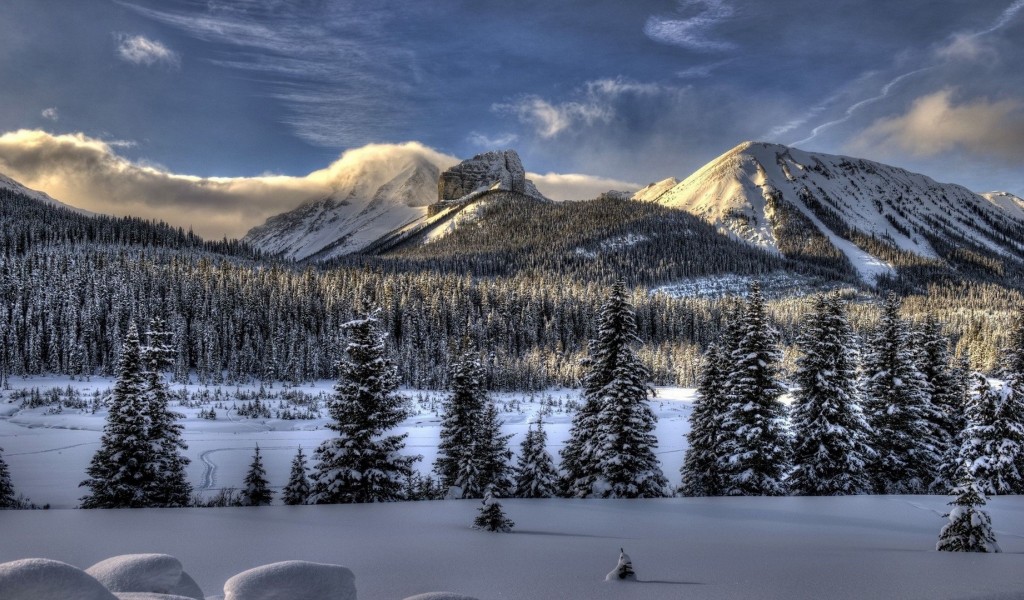 Trees full of snow HD Wallpaper - 1024x600