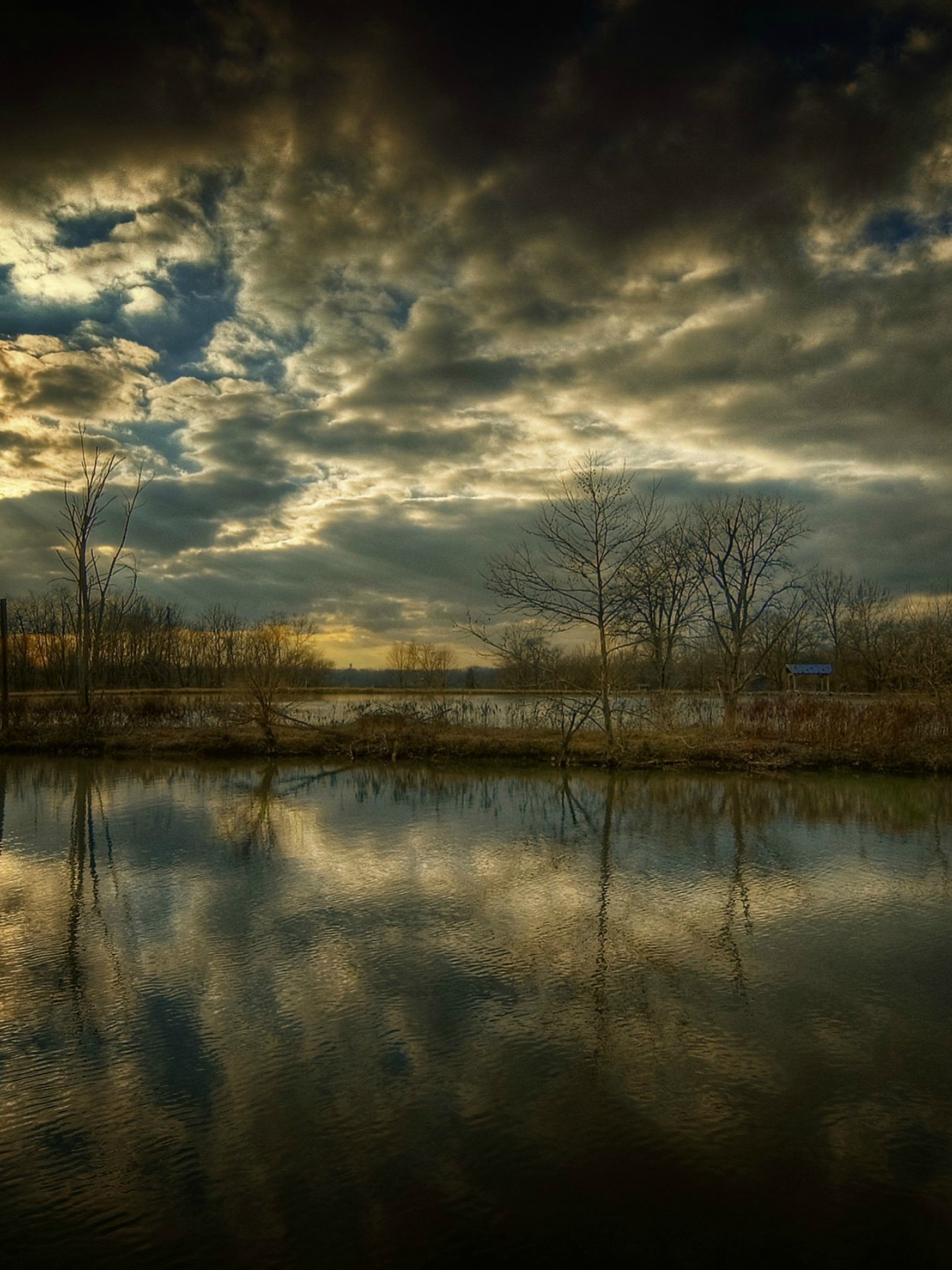 Trees Surrounded by Water and Sunset - Retina iPad