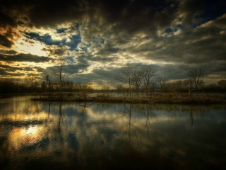 Trees Surrounded by Water and Sunset - 320x240