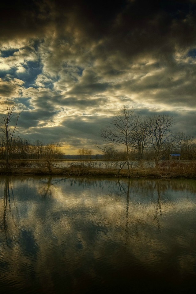 Trees Surrounded by Water and Sunset - iPhone 4 / 4S / iPod