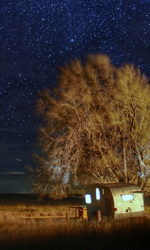 Trees under a beautiful night sky HD Wallpaper - 480x800