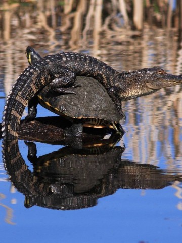 Turtle sleeping in the water HD Wallpaper - 360x480