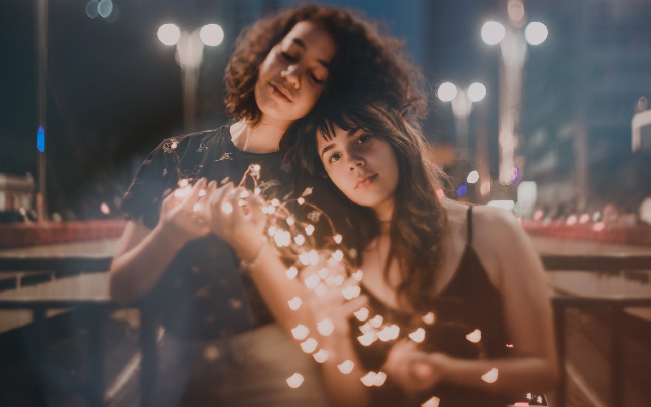 Two Women Holding String Lights Turned on HD Wallpaper - 1280x800