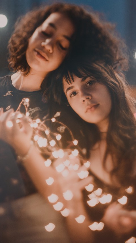 Two Women Holding String Lights Turned on HD Wallpaper - 480x854
