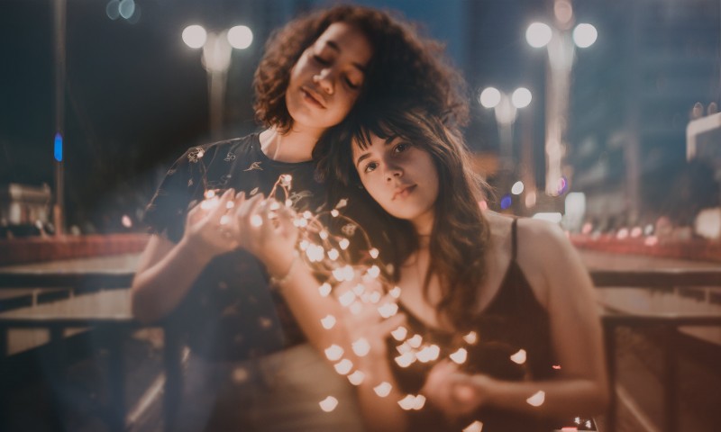 Two Women Holding String Lights Turned on HD Wallpaper - 800x480