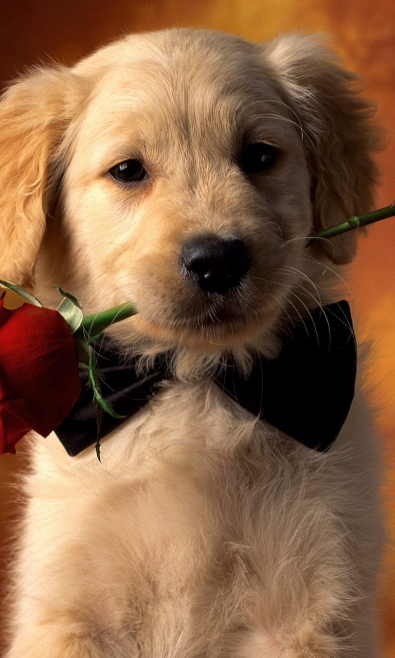 Valentine dog with red rose HD Wallpaper - 768x1280