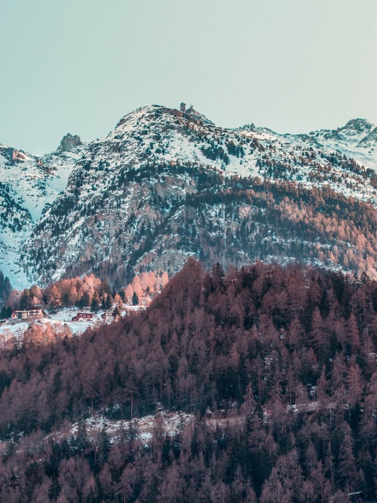 Village at a snowy mountain HD Wallpaper - Non-retina iPad