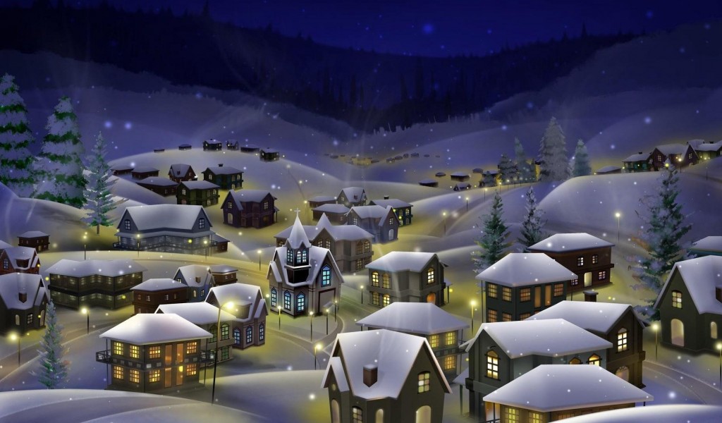 Village covered in snow HD Wallpaper - 1024x600