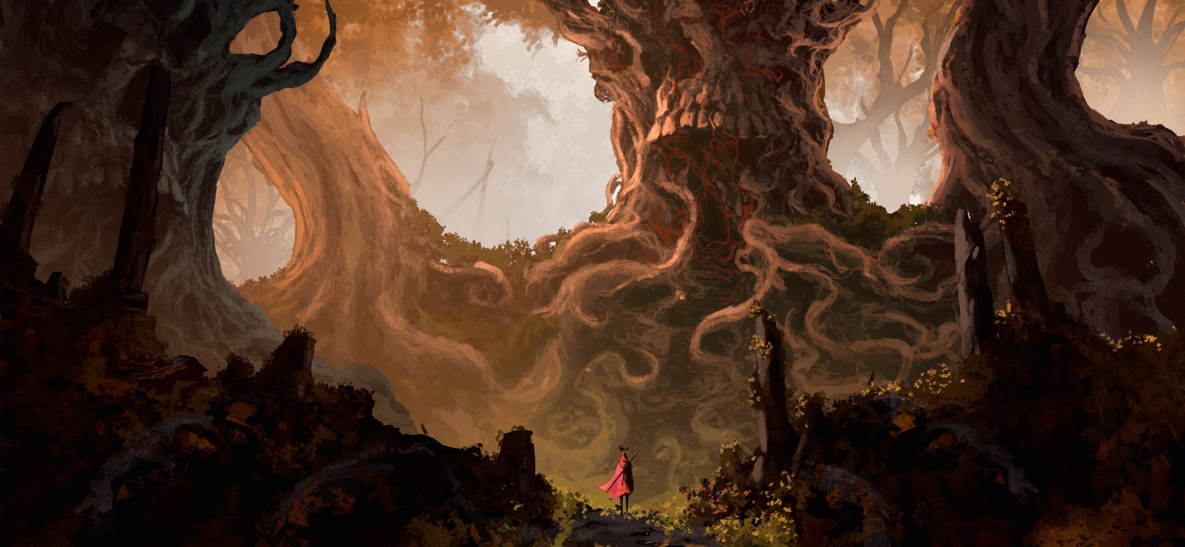 Warrior in a fantasy forest HD Wallpaper - iPhone X
