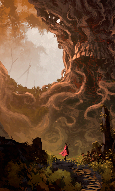 Warrior in a fantasy forest HD Wallpaper - 480x800