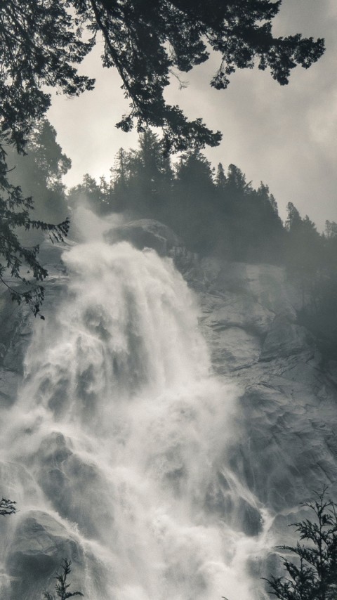 Waterfall covered in fog HD Wallpaper - 480x854