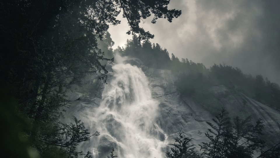 Waterfall covered in fog HD Wallpaper - 960x544 PS Vita