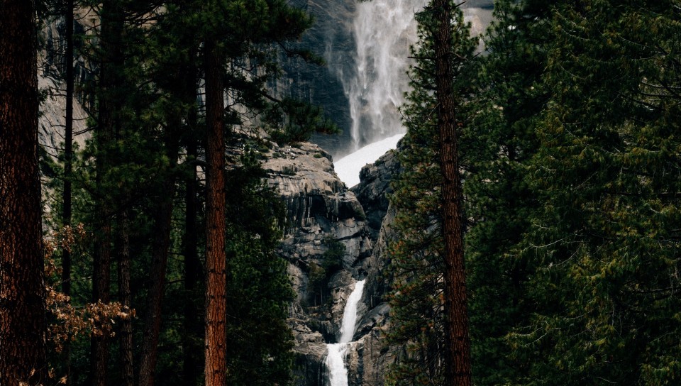 Waterfall flowing through the trees HD Wallpaper - 960x544 PS Vita