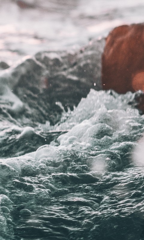 Waves splashes at rocks HD Wallpaper - 480x800