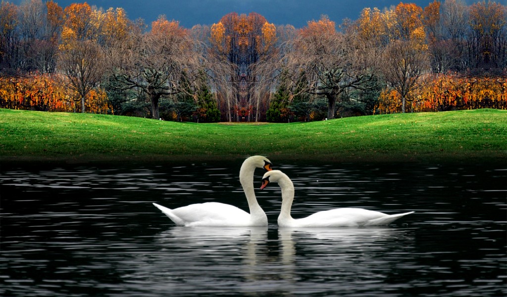 White Beautiful Swans Playing In Water Wallpaper for Desktop and Mobiles - 1024x600