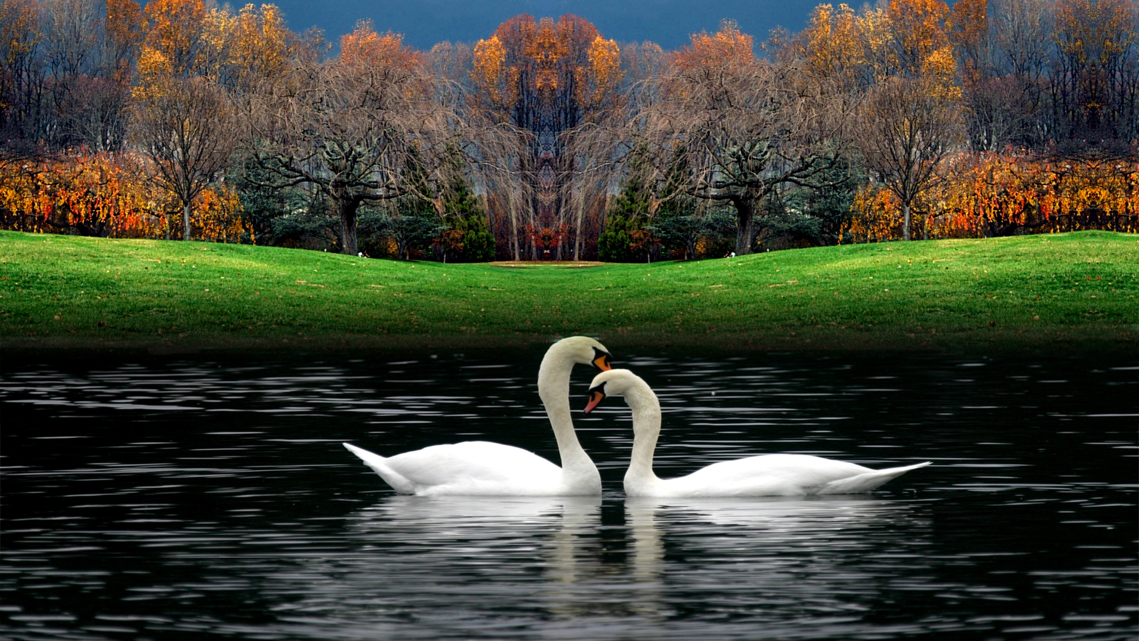 White Beautiful Swans Playing In Water Wallpaper for Desktop and Mobiles - 4K Ultra HD