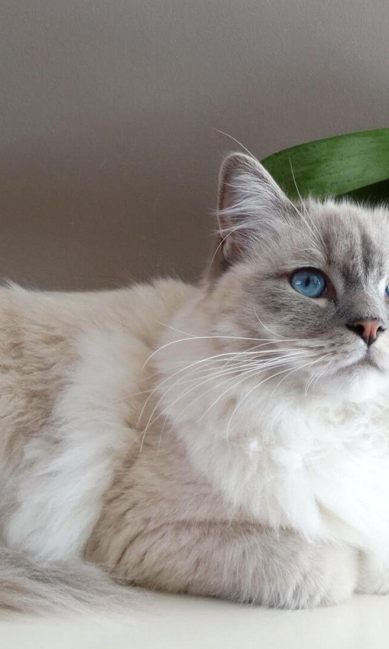 White fluffy cat lying down HD Wallpaper - 768x1280