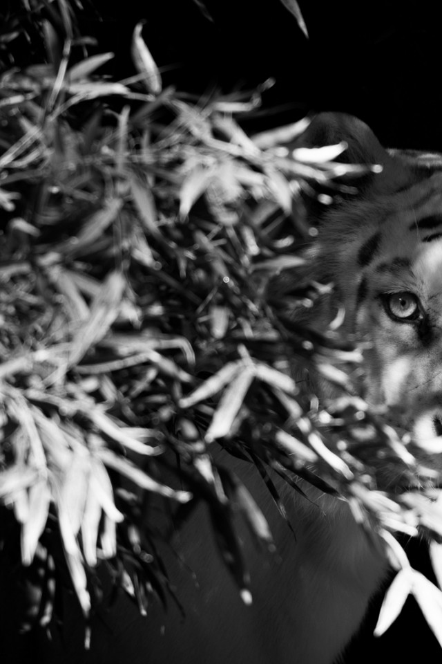 White tiger hidding behind branches HD Wallpaper - iPhone 4 / 4S / iPod